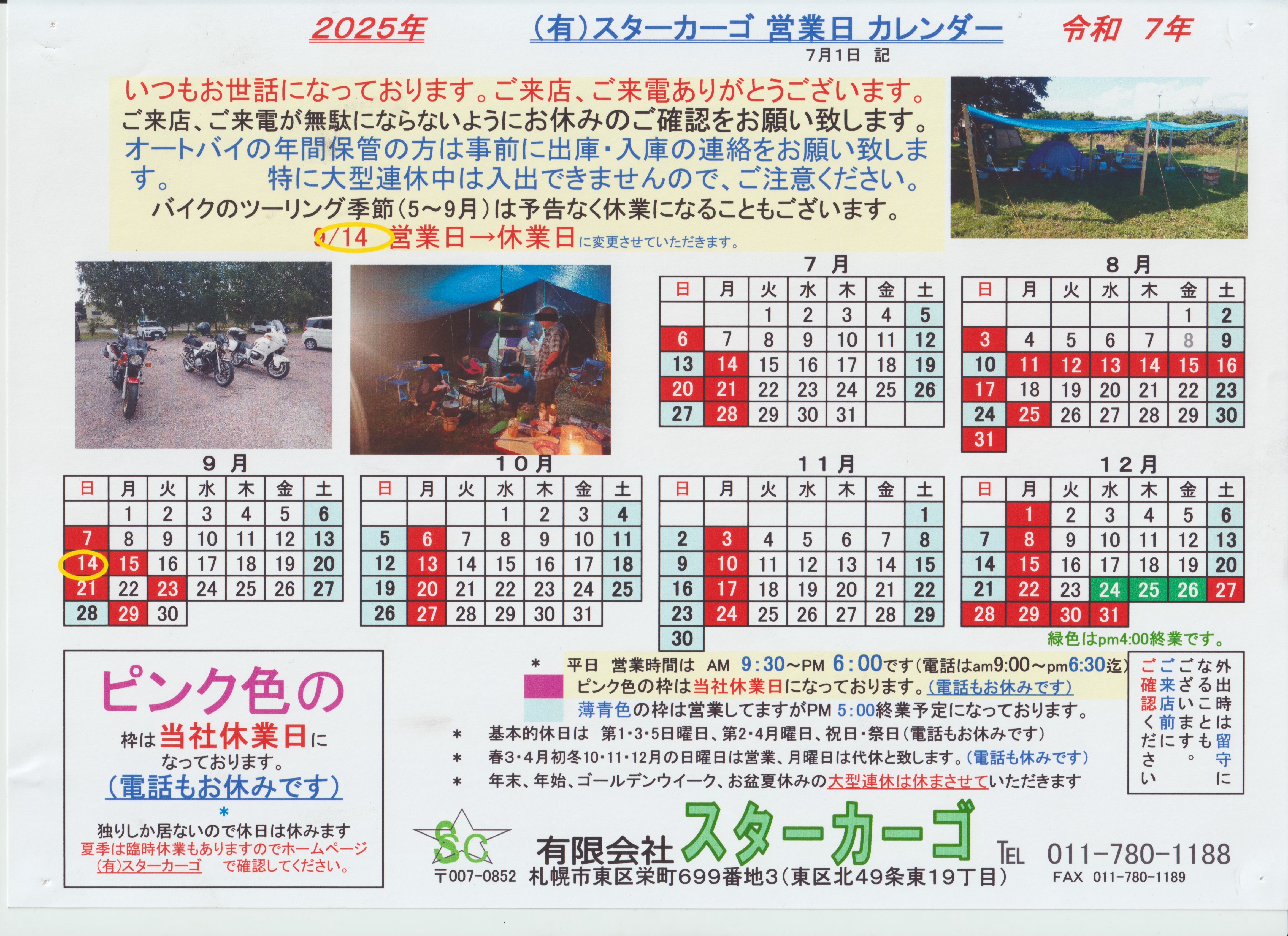 度々休日の変更があり申し訳ございません。スターカーゴは独りしか居なくイノジーも後何回の夏季を