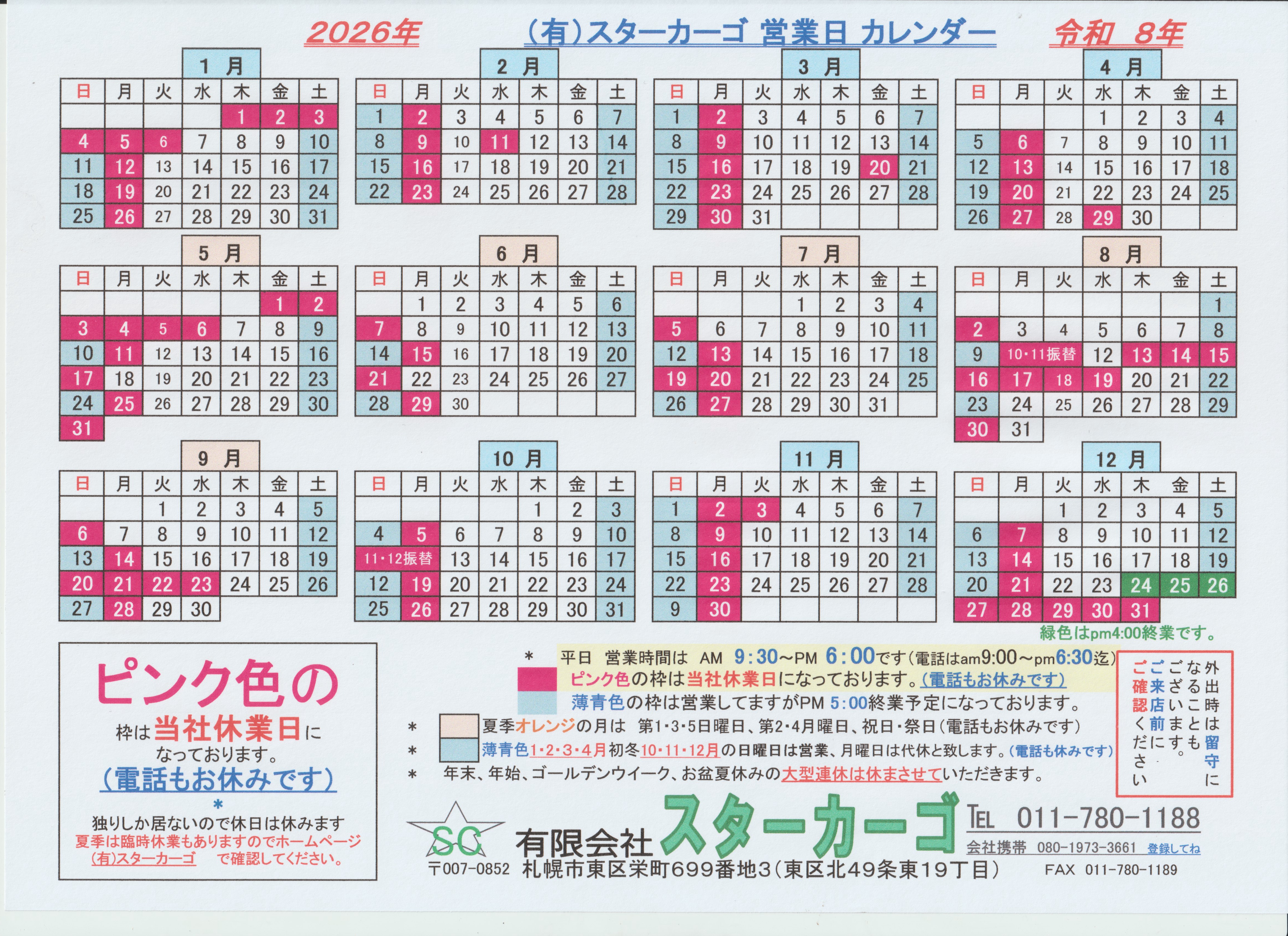 弊社の営業カレンダーを見ていただきありがとうございます。